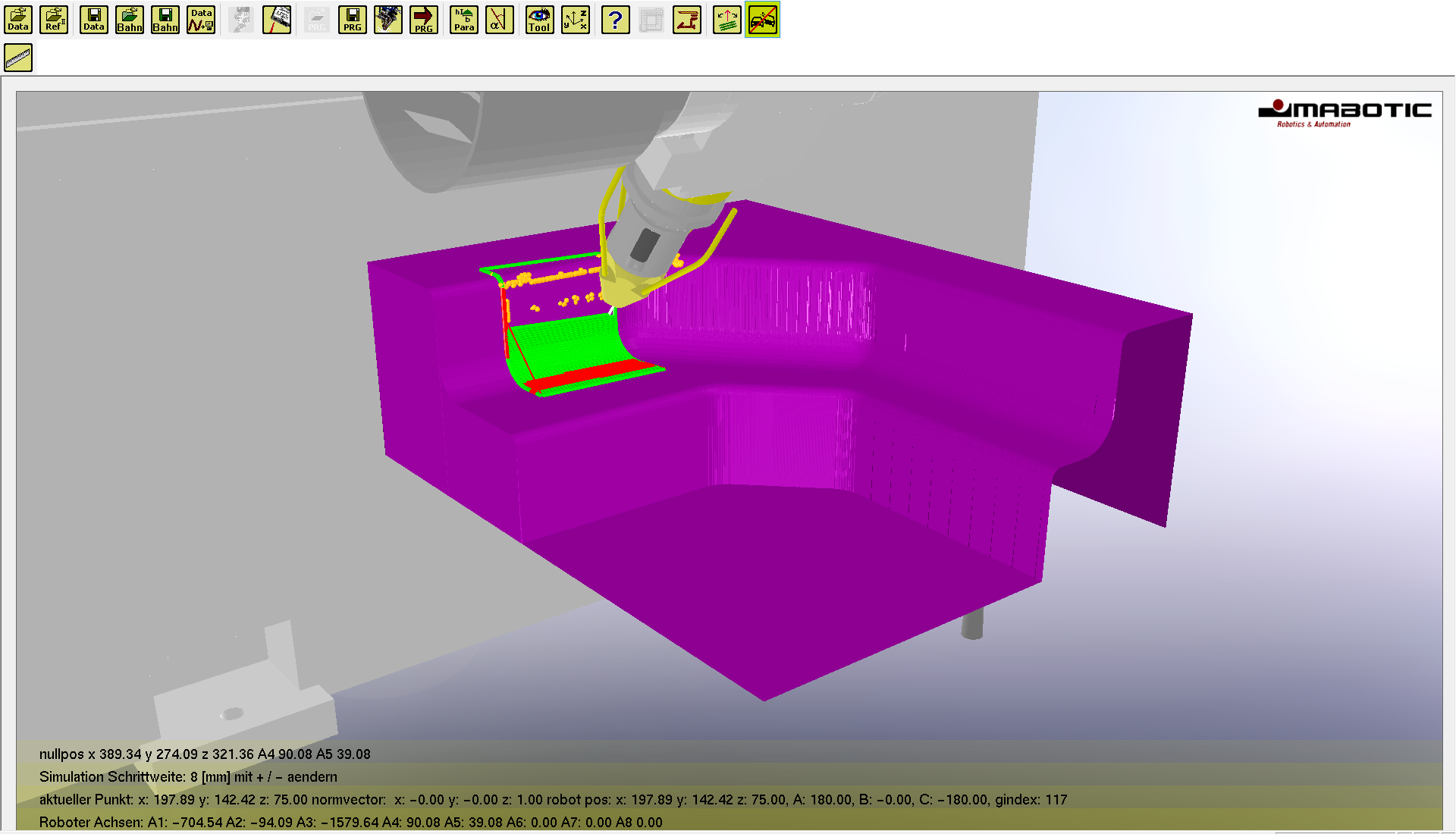 Simulieren Sie den Schweißvorgang anschließend mit ihrem Robotermodell.